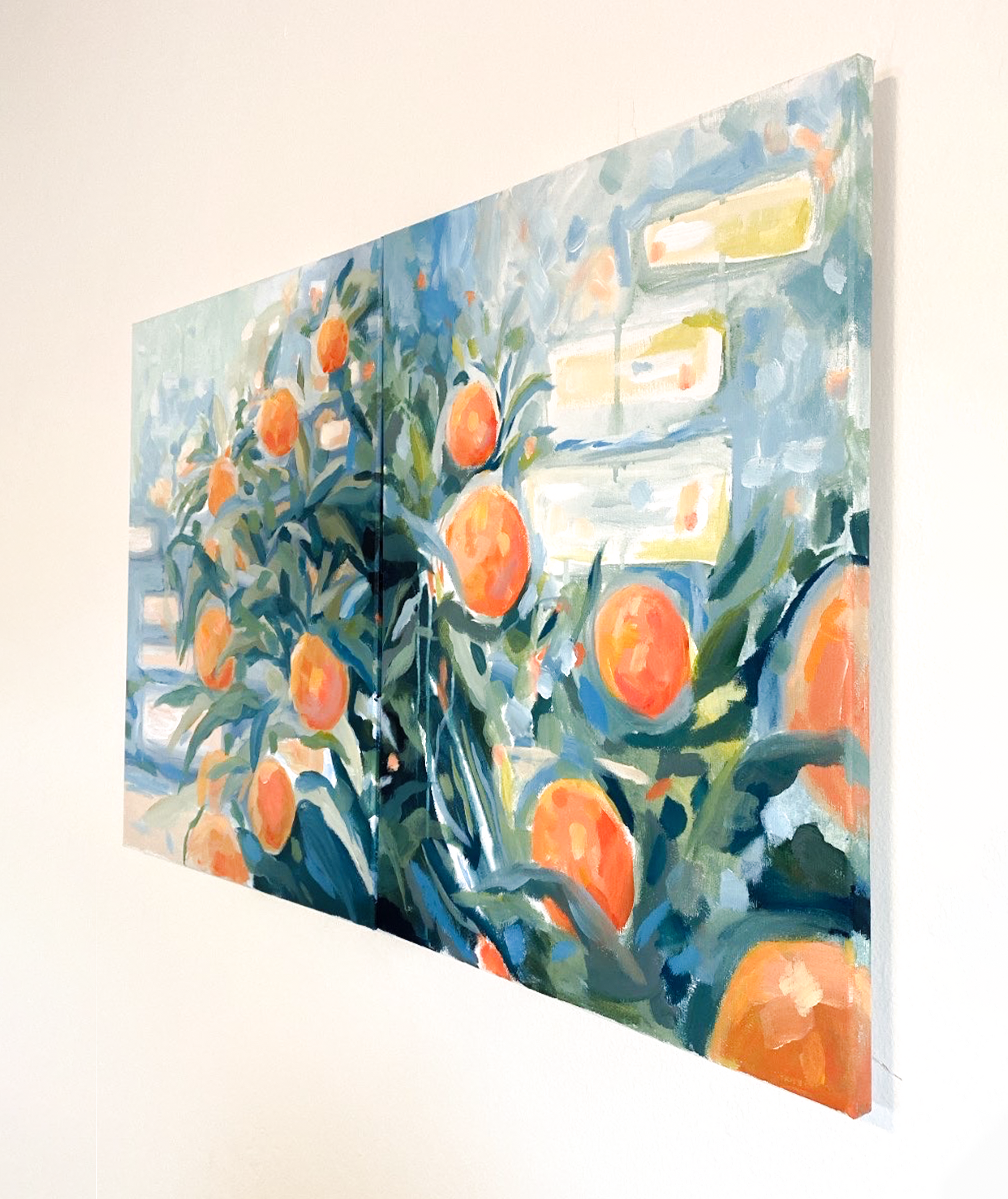 original acrylic diptych, painted live on two 16x20” stretched canvases